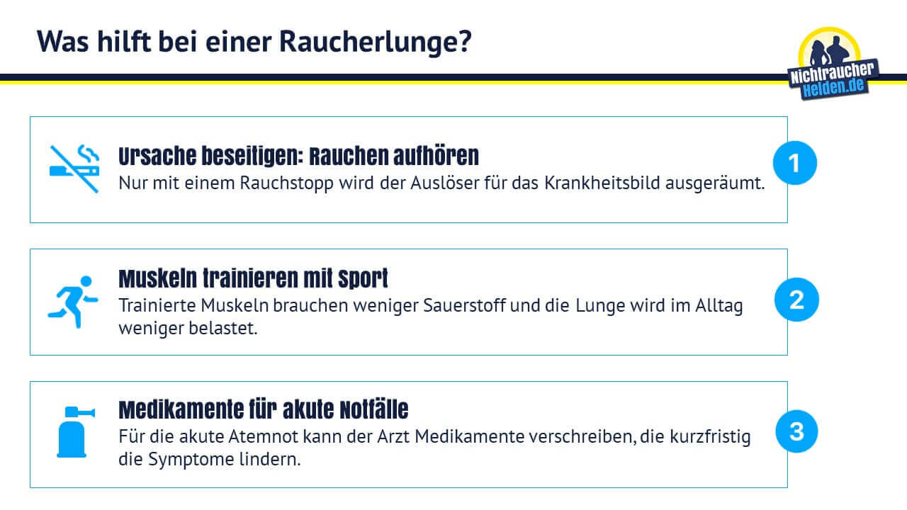 Wenn Raucher Abstand vom Glimmstängel nehmen wird ihre Lunge auf Dauer weniger geschädigt. Studien zufolge benötigt der Körper etwa 7-10 Jahre um die Lunge natürlich von den Folgen einer starken Raucherphase selbst zu reinigen. Eine vollständige Regeneration ist möglich auch wenn diese sehr lange dauert.