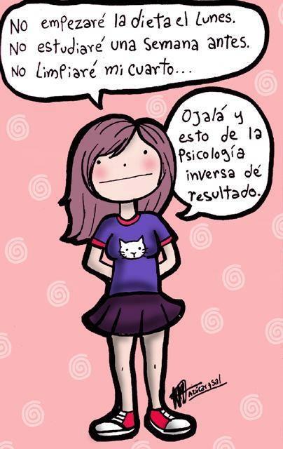 La clave de este método es el de ir con la resistencia del paciente y no en contra de ella. Una de las cosas que más nos atrae es cuando nos prohíben alguna cosa. La psicología inversa es una técnica que consiste en defender un comportamiento opuesto al que deseamos en la otra persona. La Psicología Inversa es el nombre popular con la que se conoce la Técnica de Intención Paradójica cuyo creador fue el Dr Viktor Frankl. Con una persona mayor trata de usar la psicología inversa de. Si bien es cierto que no es una técnica infalible no deja de ser eficaz. En la Terapia Cognitiva Conductual se suele utilizar en algunos pacientes que tienen determinada patología o enfermedad mental la Técnica de Intención Paradójica o Psicología Inversa. Hemos utilizado la psicología inversa. Es un proceso completamente inconsciente para la.